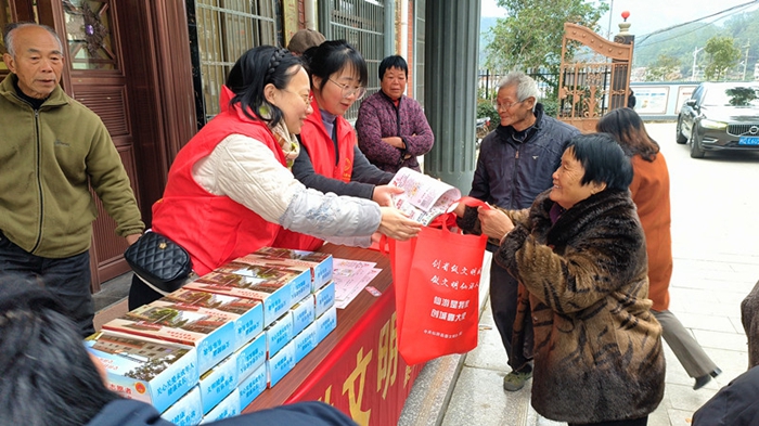 在文明新风志愿服务活动现场,莆田市委文明办、仙游县文明办组织志愿者开展文明创城、反诈防骗、崇尚节约、移风易俗等“讲文明、树新风”宣传,分发纸巾、购物袋等宣传小礼品,引导村民群众自觉抵制天价彩礼、大操大办、厚葬薄养、封建迷信等陈规陋习,深受群众欢迎。