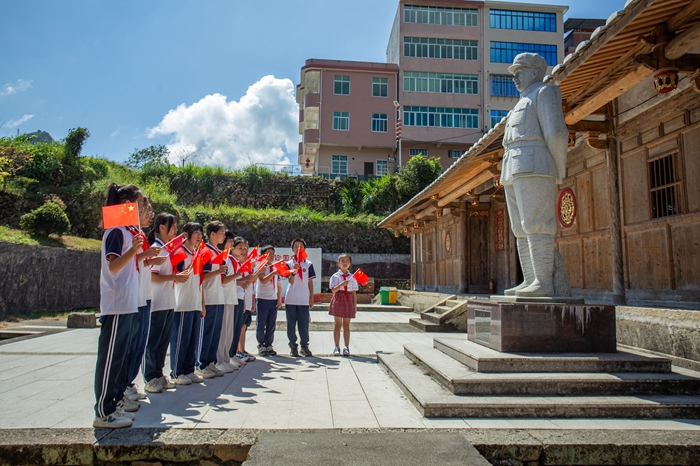 2023年9月30日,泉州市永春县横口学校组织学生开展“童心献礼迎国庆 革命薪火代代传”向红军雕像敬礼活动。