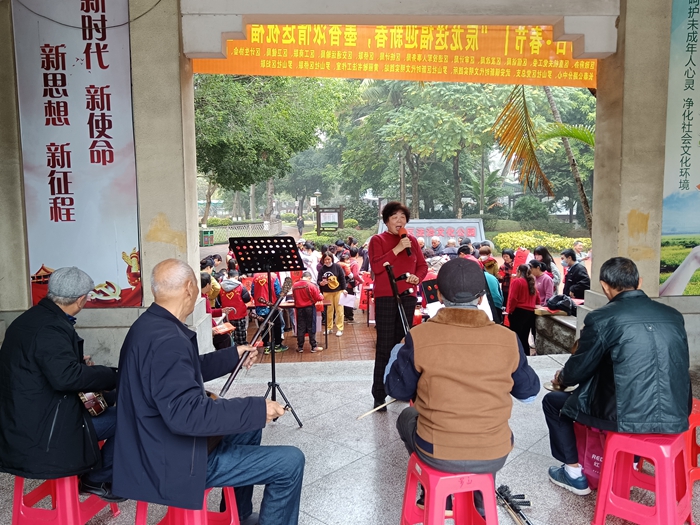 长泰区新时代文明实践中心创新开展“文艺+宣讲”志愿服务活动形式,把赏年画与理论宣讲相结合,将党的二十大精神传播到基层。