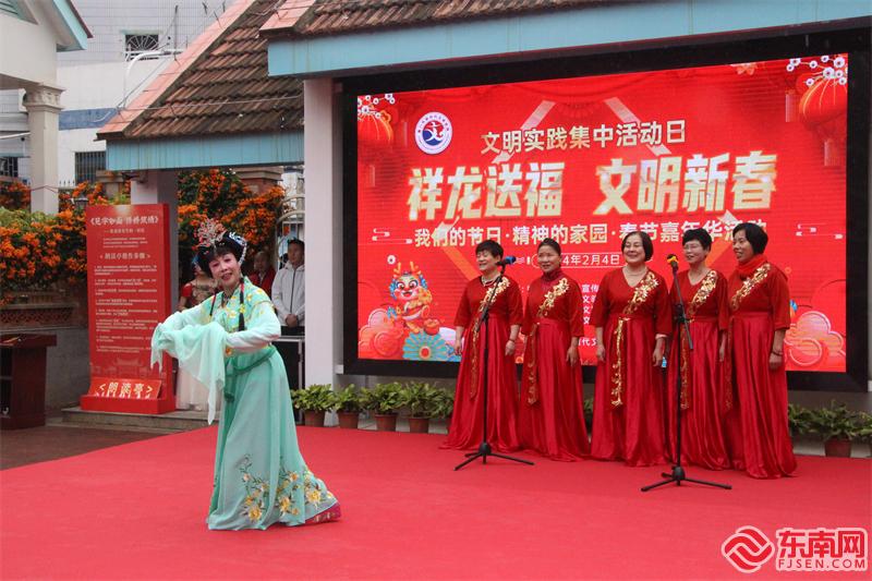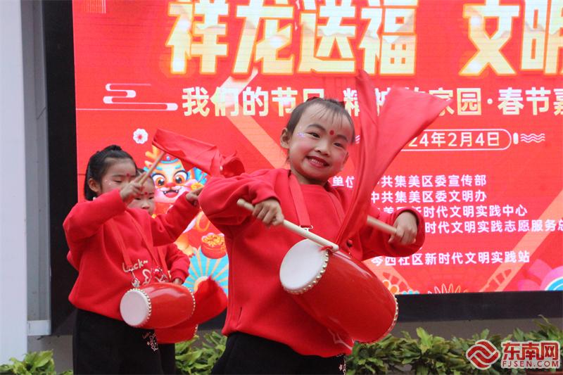 当天下午阴雨蒙蒙,但居民参与的热情不减。腰鼓舞《我是小可爱》敲出喜庆,跳出欢腾;舞蹈《梨花颂》、剧目舞蹈《抬龙王》展现出传统文化的多元传承与发展;合唱《鼓浪屿之波》唱出对团圆的期盼……现场,辖区各文艺团体拿出“看家本领”,秀出微才艺,花式贺新春。