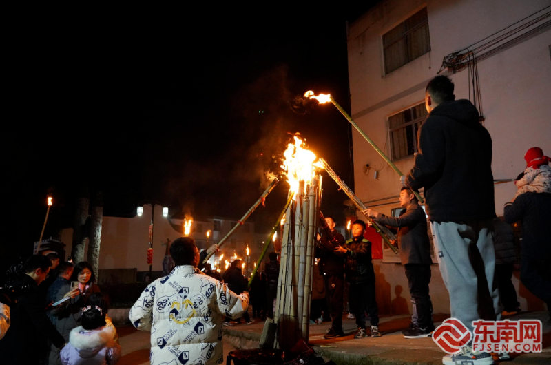 走进全国文明村镇柘荣县黄柏村,家家户户张灯结彩,村民家门前插上彩旗,立起“火树”,处处洋溢着欢乐喜庆的节日氛围。傍晚,人们纷纷走出家门,成群结队到游氏仙姑宫迎取“火种”,在爆竹声中,取火队伍犹如一条“火龙”蜿蜒前行,照亮整个村庄,寓意着来年风调雨顺、五谷丰登。