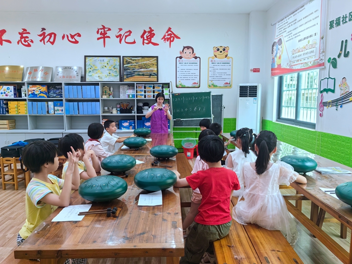 聚福社区空灵鼓乐器教学现场。泉港区山腰街道供图