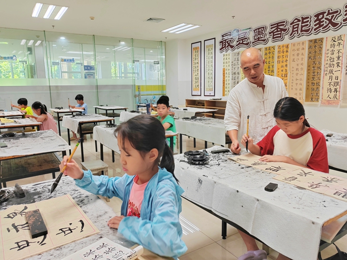 泉港区青少年校外活动中心书法课堂。泉港区委文明办供图