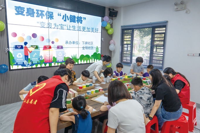 为培养孩子们的“低碳环保”理念,近日,芗城区芝山街道下碑社区新时代文明实践站、金瑞社区新时代文明实践站联合开展“变废为宝 绿色环保”亲子活动。活动中,志愿者通过现场DIY、讲解垃圾分类小知识、互动问答的方式让孩子们对垃圾分类有更深刻的认识,不仅培养了孩子们勤俭节约的美德,而且让孩子们动手动脑的能力有所提高,同时还在孩子们心中树立了保护环境、垃圾分类、废旧物品循环利用的环保意识,让青少年进一步感受到环保就在我们的身边,体验到一起参与垃圾分类的快乐。(漳州文明网)