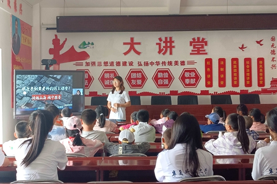 此外,实践队还组织闽宁三县市的学生开展线上交流,让孩子们了解彼此的文化特色。八节妙趣横生的直播课、录播课,让孩子们能够共享一堂课、共结一份缘、共话一段情。这些举措进一步打破地域壁垒,加深了孩子们对不同文化的理解和尊重,增强了他们对中华文化的认同。课程结束后,实践队还分发国家教育资助宣传手册,期望孩子们愿意学、学得好、用得上普通话,乘着语言文字的翅膀,走向更广阔的天地。