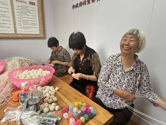 李溪村“乡村车间”内老人们正在制作香薰球。雷峰镇 供图