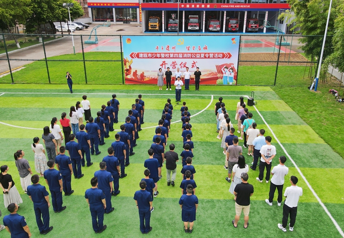 建瓯市少年警校第四届消防公益夏令营开营。消防救援大队王缨 摄