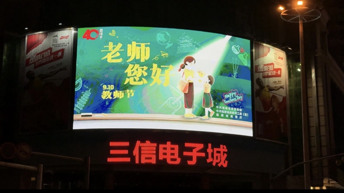 莆田市各地地标建筑、办公楼、商超及中小学校等,利用LED字幕滚动播放的方式庆祝教师节