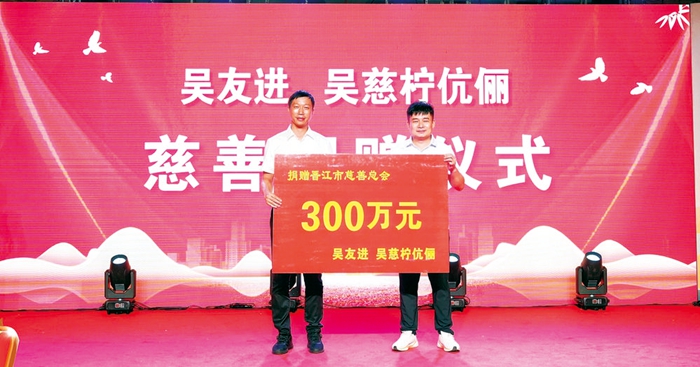 乡贤移风易俗捐赠公益成慈善新风 图片提供:晋江经济报 慈善助老成风 铸就慈孝文化 重阳节前夕,磁灶镇岭畔村802位老人分别领到一笔千元大红包,个个喜笑颜开。 为老人发红包的,正是带头践行移风易俗新风尚的磁灶乡贤吴友进、吴慈柠伉俪。他们不但取消了长女吴静怡的16周岁生日宴,还向晋江市慈善总会捐赠了300万元。 这仅仅是该镇慈善孝老的一个剪影。近年来,晋江磁灶镇以发展养老事业为落脚点,以新时代文明实践移风易俗为抓手,持续引导辖区居民简办或不办婚丧喜事,将节省下的资金用于养老事业。这一举措,不仅弘扬了社会慈善反哺农村养老的文明新风,还形成了磁灶特色的慈孝文化品牌。 洋宅村的养老事业蓬勃发展,特别是针对全村老人实行的“免费午餐”,让老人们真正享受到了实惠,也让外出的年轻人感到放心和认可。在这里,简办婚丧喜事,或是逢年过节,捐资给老人已经成为一种风尚。 如果说,个人捐资用于慰问老人或助力养老机构日常运营是公益敬老的个案,那么集体捐资用于敬老院建设等养老事业,则是长效的孝老善举。在磁灶各村(社区)敬老院的建设和后期运营中,都收到了来自社会各界的敬老捐资。 从公益敬老到慈善孝老,磁灶养老事业的蓬勃发展,得益于全民敬老、孝老风气的养成,更受益于移风易俗带来的公益慈善事业的反哺。 截至目前,磁灶26个村(社区)都有村民通过践行移风易俗,捐资助力村级养老事业的发展。正是社会公益慈善的反哺,才使得磁灶的养老事业得以良性发展,磁灶老人得以实现老有所养、老有所依。