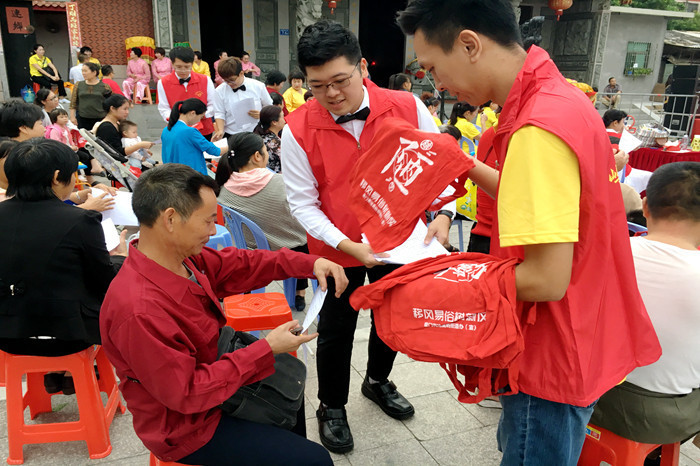 嵩屿街道党员和纪检干部发放移风易俗宣传单和宣传袋,向村民宣传移风易俗新风尚。