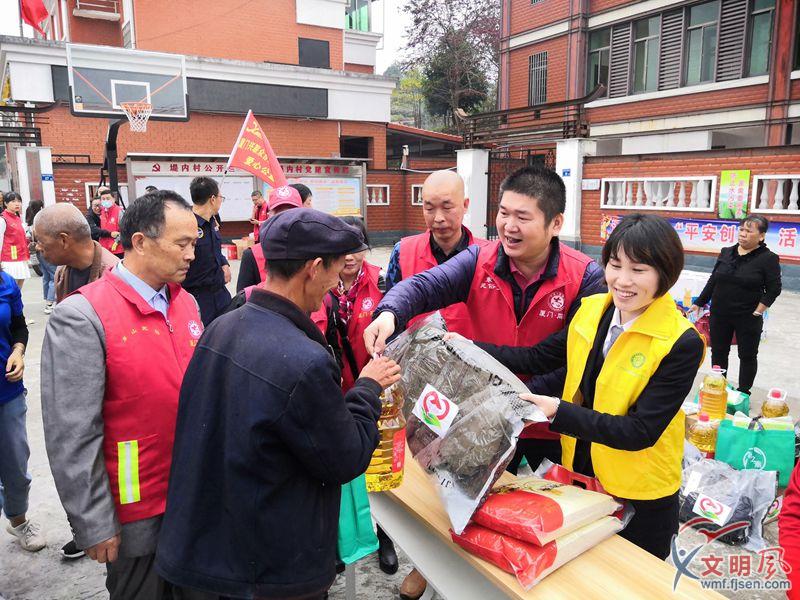 在汀溪镇堤内村,100余名志愿者前往乡村送关怀。志愿者们现场为堤内村33名困难群众及8名困境儿童送上了油、米、保暖大衣、罐头、日用品、大礼包及学习用品等慰问品。村民吴某身患疾病住院治疗,其妻子患有精神疾病无法劳动,吴某因病治疗需要不少医药费,原本并不宽裕的家庭更加捉襟见肘。志愿者送上慰问品,并嘱咐吴某注意身体,有问题可随时向村里反映或联系志愿者。