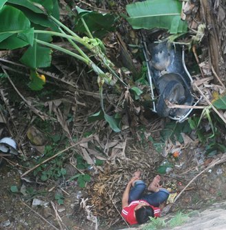记者随后了解到,这名欲轻生的女子,当时是骑摩托载着她11岁的儿子,冲下了5米深的陡崖。幸运的是,崖边一棵香蕉树卡住了母子俩,阻止了这场自杀。
