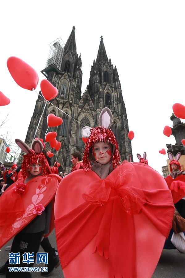 2月26日,孩子们在德国科隆参加狂欢节游行。德国科隆50所学校的学生26日参与了狂欢节游行表演活动。新华社记者罗欢欢摄