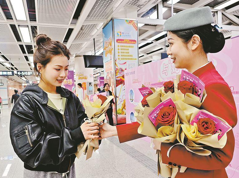 厦门地铁准备了3500余朵玫瑰花 送给乘车的她
