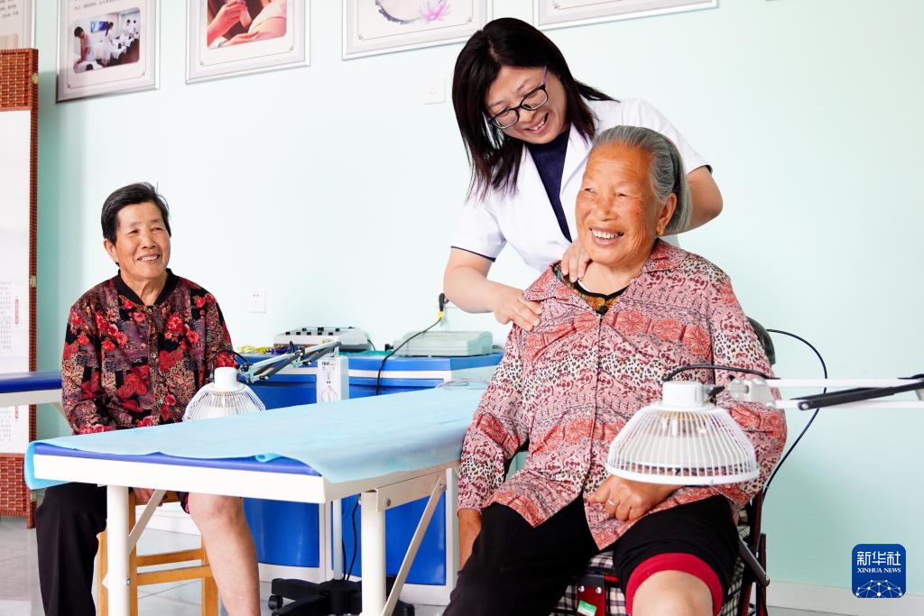 5月10日,在日照市岚山区虎山镇黄家峪村养老服务中心,工作人员在为老人做理疗。 山东省日照市岚山区近年来积极探索新型养老模式,通过“区财政+村级集体+社会各界+老人子女”的共建机制,建设村(社区)级养老综合服务中心。养老综合服务中心配备休息室、就餐室、文体娱乐室、健身康复室和室外活动场地“四室一场”,为75周岁以上老人提供助餐、助医、助娱、助居家等综合养老服务。 新华社记者 郭绪雷 摄