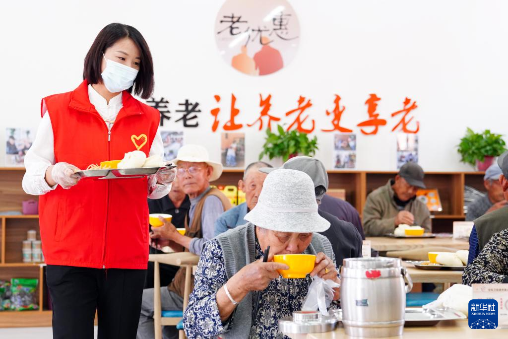 5月10日,在日照市岚山区安东卫街道凤凰山社区养老服务中心,老人在用餐。 山东省日照市岚山区近年来积极探索新型养老模式,通过“区财政+村级集体+社会各界+老人子女”的共建机制,建设村(社区)级养老综合服务中心。养老综合服务中心配备休息室、就餐室、文体娱乐室、健身康复室和室外活动场地“四室一场”,为75周岁以上老人提供助餐、助医、助娱、助居家等综合养老服务。 新华社记者 郭绪雷 摄