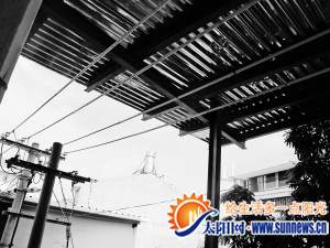 380V低压线横穿违建。记者 雷妤 摄 昨日上午,记者来到了曾厝垵330号,四层高的小洋楼正在装修,违建部分是二三层的露台,面积大约有40多平方米。城管队员介绍,原本业主只是想修补一下漏雨的雨篷,可他们8月18日巡查到这栋楼时,发现原本窗台的位置延展出一个平台,搭设了铁皮屋顶,还把4条380V的低压线包裹在房子内。 难道业主就不担心危险吗?业主告诉记者,他违建时也没有想那么多,以为用U-PVC管将4条高压线绝缘,就可以防止触电。 昨日,城管人员组织人员对其进行拆除。“他建就只要半天时间,我们要拆一天半。”城管队员说,由于这处违建地点十分特殊,工人拆除时需要十分小心,不仅如此,掉落的石块随时都有可能会砸到线路,对供电产生影响。 据了解,这是曾厝垵所有违建中最危险的一处违建。而在此前,曾厝垵还发生2起业主将电线杆、通信设备围在自家院内的情况。 城管队员介绍,曾厝垵从村落发展到现在这个规模,部分基础设施还不是很完善,许多住家与通信通电设备相隔很近,稍微一扩张就可能有危险。 |