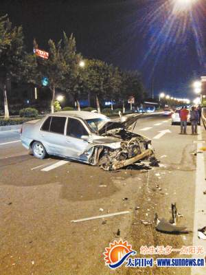 记者 刘平 摄 海西晨报讯(记者 刘平)前日晚,读者李先生向晨报报料称,成功大道发生车祸。 当晚11时许,记者赶往现场,事发地在成功大道金湖路口附近。3名年轻男子正在现场等待民警进行事故认定。小车司机罗师傅告诉记者,当晚他本要到机场去接人,为避让左前方一部小车,发生了车祸。罗师傅心有余悸地说,幸亏他系了安全带,他才没有受重伤,罗师傅的脸上有轻微擦伤,并无大碍。 |