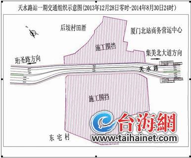 东南网12月27日讯(海峡导报记者 詹文 通讯员 李春妮)因厦门地铁1号线天水路站工程施工需要,2013年12月28日零时至2014年8月30日24时的8个月工期内,集美区天水路与珩田路交叉口将设置施工围挡。 这期间,该路口往集美北大道方向140米,往珩圣路方向170米,疏解道路由原有的双向6车道改为双向4车道(见示意图)。 届时,请司机朋友们尽量避开该施工路段行驶,选择集美北大道、珩圣路、圣果路等道路绕行。建议沿线居民合理调整出行时间和出行方式,尽量避开道路交通高峰时段出行。 行经该路段车辆请严格按照现场道路交通指引标志通行,并服从现场警察和协管人员的指挥疏导。 |