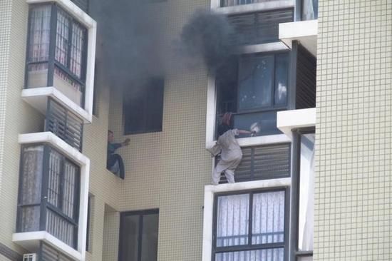 厦门一小区33楼突发大火 女子钻进窗户夹缝中获救