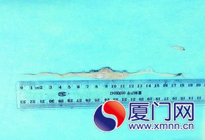 厦门晚报讯(记者 苏奇 通讯员 潘萍)66岁的老蔡近两个月来一直咳嗽、咳痰,并总觉呼吸困难,咽喉有异物感。随着时间的推移,异物感也逐渐加重。近日,他来到第二医院市呼吸中心就诊才知,罪魁祸首竟是一根约20厘米长的纱布。 两个半月前,老蔡因肺栓塞在外地某医院把气管切开进行机器通气,两个月前,他病情好转,拔除了气管套管。然而,医生操作时却不慎将一条纱布遗落在老蔡的气管内。市呼吸中心医生对他进行气管镜检查发现,老蔡气管腔内有一长条状异物,原气管切口肉芽组织增生明显,异物的一端埋在肉芽组织中,异物随咳嗽而飘动,部分经声门进入咽腔及食管。因此,虽然气管切口愈合,老蔡却一直有咳嗽、咳痰等不适感。 医生通过氩气刀从根部将异物烧断,取出一条约20厘米长的纱布,效果立竿见影,老蔡的咳嗽、气喘大大缓解。 |