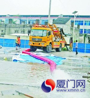排涝利器“龙吸水”排涝抢险专用车正在执行排涝任务。