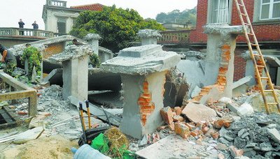 鼓浪屿安海路57号的屋顶违建,现已拆除。 后