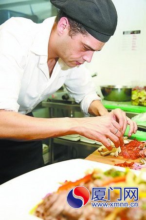 认真做菜的帅气大厨。 厦门日报讯(文/记者 何无痕 图/记者 王火炎)Gregory的模样很帅,眼神深邃,个子很高,没穿厨师服时,就像电影明星。但当他进入厨房,就成为他的“美食王国”的国王,他创造的美食迷宫,会让食客迷失在味蕾与视觉的双重冲击里。 他是追求极致的五星级主厨,也是浪漫的旅行爱好者,他在广州邂逅了江西美女龙冠云,如今两人已牵手10年。这位法国大厨最终选择偕妻子来厦门定居并发展事业,他说:“我喜欢这里的生活。” |
