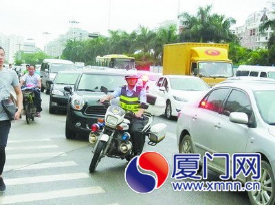 【镜头】 在屿浦路,违停车辆、逆行车辆添堵。(记者 吴海奎摄) 昨日下午,湖里大道往金尚路也堵成一条长龙。(记者 王火炎摄) 警察在车流中穿梭,疏导交通。(记者 吴俊鸿摄) |