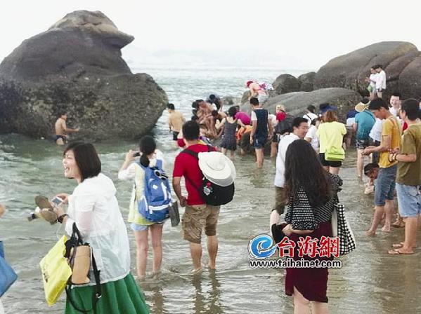 东南网6月26日讯(海峡导报记者 林彬彬)围着礁石,盯着水面,面露兴奋……昨日下午,众多游客在白城海边上演了“守石待鱼”的一幕。 下午4点多,靠近沙滩的礁石群区域,突然大量小鱼跳出水面,很多鱼儿还蹦到了礁石上,“啪啪”作响。 部分礁石区域的水只到大腿,附近游客靠过去,徒手抓鱼。仔细一看,这种小鱼五六厘米长,但数量庞大,有的游客装满了玩具桶。 这鱼似乎是一拨一拨来的,游客们也很耐心,就在礁石周边守着,等鱼又跳上来,又是一番“抓鱼乐”!“几分钟就来一拨鱼,大概来了十几拨,大家都抓得很开心。这种怪现象往年也有过,这是今年的第一次。”常年在白城海域走动的丁先生说。 丁先生介绍,休渔期已过了一段时间,这些小鱼都是“新生代”,数量庞大,可能因缺氧等原因,才随着波浪跳上礁石或者沙滩。 |