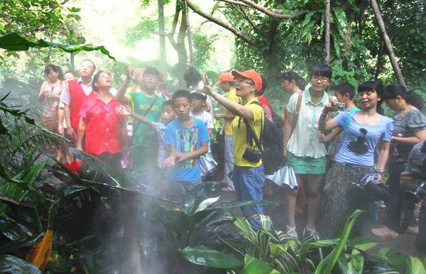 7月5日上午,梧村街道辖区内的孤困儿童在城市义工的陪伴下,来到万石植物园,同游科普展览馆和热带雨林区,观赏各类奇特的植物,学习植物方面的知识,感受丰富多彩的暑假生活。