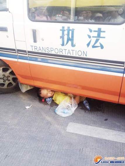 红圈内为事发现场。 海西晨报讯(记者 刘宇瀚 见习记者 吴雪莹 实习生 李奕萱 郑鸿青)被执法人员抓了现行,“黑车”司机仍不配合,还钻到执法车辆底下…… 昨日16时许,交通高峰期,在轮渡公交车站靠旅游码头一侧,一辆银灰色小轿车停在路边,车门和后备厢大开。在其前方,停着数辆交通执法车辆。一名黄衣男子在马路中间走来走去,不时向数名交通执法人员大声挑衅。 据了解,这名黄衣男子是“黑车”司机。昨日下午,交通执法人员在轮渡日常检查时,发现其存在非法载客现象。 “当时他车上载着4名乘客,商谈好以50元的价格送到莲花。”执法人员洪先生告诉记者,当执法人员要扣车,“黑车”司机不干了。 记者在现场看到,执法人员对黄衣男子开具“强制执法单”后,该男子拒绝接受。当执法人员上前准备将他的车开走时,男子立即上前阻挡,并不断辱骂执法人员。他还多次走向马路中间,用身体阻挡公交车通行,险象环生。 期间,该男子一直称执法人员打人。当执法人员将其带到执法车辆内时,双方发生拉扯,但并没有较大的冲突。 无奈之下,执法人员报警求助,鹭江派出所民警赶到现场。见自己的车子被执法人员开走,黄衣男子居然钻到执法车辆底下。由于地面高温,该男子频频向围观者索要矿泉水。 该男子自称是漳州人,车是租来的,“如果你们敢把我的车拿走,我就跟你们拼命。” 昨日下午5点半,记者离开现场时,男子仍然躺在执法车辆底下。 昨晚,记者从警方获悉,在持续数小时后,由于地面温度过高,该名男子出现虚脱现象,执法人员拨打120求助。该男子随即被送到医院急救。但没多久,他就趁医护人员不注意,逃离医院。稍晚记者又从警方获悉,该男子因妨碍执法和扰乱正常交通秩序被依法刑拘。 |