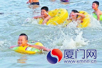 昨天,小朋友在海里戏水消暑。 (记者 陈立新摄)