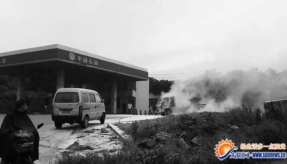 小货车上的大火被扑灭。网友供图 324国道同安段 海西晨报讯(记者 林曦)停在路边的小货车突遭飞来横祸,被一辆车迎面撞到。随后,小货车顺势“跑进”了加油站出口处,这时,小货车车头突然燃起大火。一边是燃起熊熊大火的小货车车头,一边是禁止任何明火的加油站,在这个危急时刻,加油站工作人员和附近市民及时用大型干粉灭火器扑灭了大火,将危机化解。事发前日下午3点半、324国道同安华兴学校附近路段。 记者赶到现场时,小货车车头的火势已经被扑灭,车子周边遍布灭火用的干粉。随后,记者走近看到,小货车的车头几乎已经烧毁殆尽,座椅和方向盘都被烧得只剩下骨架,而车门及挡风玻璃均被烧毁,从车门上残留的燃烧痕迹可以看到事发时火势有多大。令人触目惊心的是,这辆小货车燃烧时停下的位置,距离最近的加油机仅七八米远。 据目击者谢先生介绍说,事发时该车停在国道附近,不想突然遭到另外一辆车的撞击。由于事发地位于一个下坡路段,这辆被撞击的小货车顺着坡势缓缓跑进附近加油站。更可怕的是,这辆车被撞后开始冒烟起火,大火很快罩住了整个车头。附近市民和加油站工作人员发现后,着实吓了一大跳。 见到燃着熊熊烈火的小货车在距离加油机七八米远的地方停下来后,加油站工作人员和附近群众赶忙拿起站内的大型干粉灭火器前去扑救。所幸,火势很快就被控制,随后被扑灭。消防官兵闻讯很快也赶到了现场,虽然小货车上火已经被扑灭,但是为了确保安全,消防官兵还是用水枪对灭了火的小货车进行降温,防止复燃。 目前,小货车起火原因仍在进一步调查中。 (报料人 陈女士 奖金30元) |