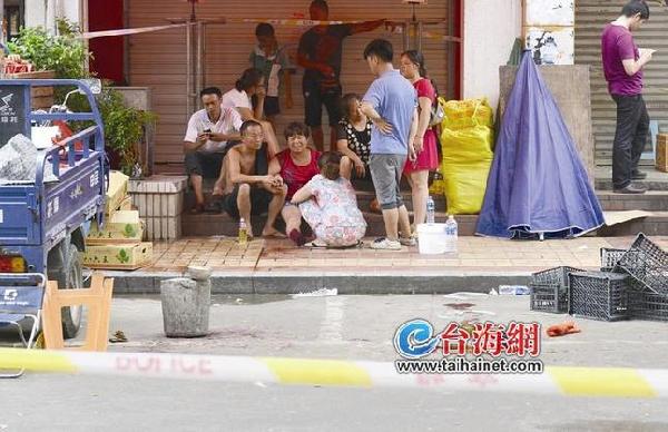 东南网7月29日讯(海峡导报记者 曾毓慧 房舒 见习记者 刘承/文 陆军航/图 通讯员 厦公宣)熙攘的菜市场旁,一个摊贩的脖子中刀,流血不止,不幸身亡。 警方调查证实,行凶者为死者的牌友,双方因打牌发生口角,牌友离开后持刀折返砍人。事后,行凶者跑了,8小时后被警方抓获。 回忆 男子满身血往外跑 昨日下午1点多,血案发生在集美灌口菜市场外围店面,即凤泉西路一水果摊前。 事发后,警方在周边拉起警戒线,并展开调查。毗邻案发现场的几家商店已经关门。 导报记者现场看到,血迹从一家服装店门口流淌至马路。路边台阶上坐着2个中年女子,正抱头痛哭。其中一人是受害者妻子,另一人是他们的朋友。 有目击者称,受害者在服装店门口被砍,然后踉跄往外跑,跑了几步便倒在地板上。“我听到声响,跑出去时看到,一个男的躺在地上,鲜血一直从脖子处往外冒,那两个女的就拿手去按住伤口,想止血,可是伤口又深又长,根本压不住!”旁边一位店主说起这事,手还不停地发抖。 这位店主说,当时他正在店里陪孩子读书,突然听到有人喊杀人了,往外一看,看到这可怕的一幕。 还有目击者说,当时他正在附近买东西,突然听见玻璃瓶破碎的声音,然后就看到一个人满身是血往外跑,没几步就倒在地上,鲜血直冒。当时他害怕极了,吓得都走不动了。 事后,受害者被120急救车送往医院。 |