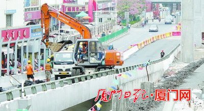 仙岳路高架桥改造现场。(记者 郑晓东 摄) 厦门日报讯(记者 卓悦佳)最近经过仙岳路高架桥中医院段的市民可能发现,这里已经建起了高高的桥梁立柱,而台湾街口和金尚路口的两对上下桥匝道桥也已经接近完工。为了按期完工,国庆期间,仙岳路高架桥改造项目依然抓紧时间施工。 现场负责人告诉记者,目前台湾街口和金尚路口的上下桥匝道主体已经完工,之后还要铺设沥青,安装收缩缝,画上交通标志线等,预计本月中旬投用。这两对新的上下桥匝道桥投入使用后,整个仙岳路高架桥改造工程中最具挑战的桥梁顶升工作也就随即展开。 在桥梁顶升的同时,改造工程中计划要新建的1290.5米长的仙岳路高架桥主线桥也将同步进行施工。由于这一段新建的高架桥主线桥还将要跨过鹰厦铁路及成功大道,因此,桥面距地面最高的地方高度达21.4米。目前,这段主线桥的桥梁立柱也在施工中。 改造工程中还将新建4条连通成功大道与仙岳路高架桥的空中匝道。根据测算,全面改造完成后,仙岳路该路段的通行能力将由原来的每小时11000辆次提升至每小时19000辆次,通行能力提高70%以上。 【焦点】 高架桥顶升高度创纪录 在改造项目中,现有仙岳路高架桥顶升高度将达11.2米,这是国内目前高架桥顶升高度之最。据介绍,顶升工程大概需要持续约3个月时间,预计明年元旦前后结束。据负责人介绍,顶升过程中,预计不会对现有交通再有更多的影响,仙岳路这一施工路段将依然保持现有的通行状况。 |