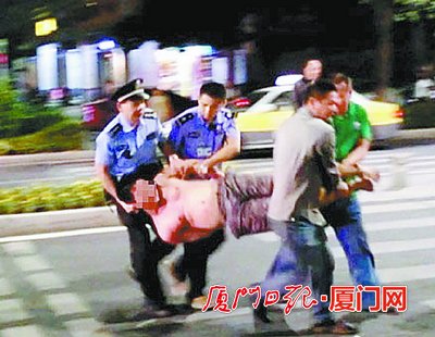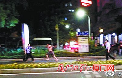 - [ 09-09]一名醉汉手持木棍光着膀子打保安 事发厦门中山路