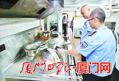 城管执法人员在厨房对灶具贴上封条。