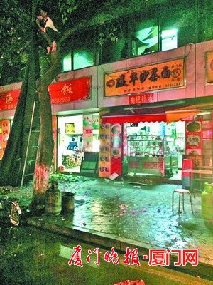 ■事发现场。 厦门晚报讯(见习记者 李毅颖 记者赵晨旭)昨晚9点,市民林女士拨打晚报市民热线5589999反映,在湖里区长乐路上,一家小吃店发生火灾,记者赶到时火势已经扑灭,没有人员伤亡。店面口放着一瓶煤气罐,周围还弥漫着一股煤气的味道。 发生火灾的小吃店是一家沙茶面馆,位于长乐路和长虹路交叉路口附近,周围聚集着不少类似的小型餐饮店。小吃店有两层,一楼店面主要用于营业,二楼是厨房。店家告诉记者,发生火灾的时候,他们都在一楼,看到二楼在冒烟,同时闻到烧焦的味道,才想起煤气灶没关。 店家告诉记者,当时煤气灶上火势很大,把玻璃都烧裂开了,他们什么也没想就赶紧灭火,切断电源。看到火灾,附近的店家也都来帮忙,有的提水,有的帮忙报警。记者了解到,当消防官兵到达现场时,火势已经在大家的帮助下控制住。消防官兵为煤气罐喷水降温,彻底消除隐患后才离开现场。 |