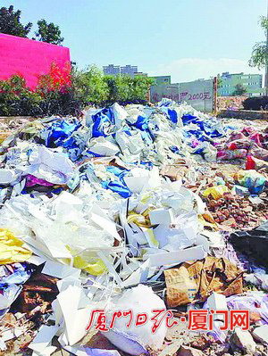 前埔路公交车站后侧的“垃圾山”。 [乱象3] 无视“警告牌” 垃圾照样乱倒 地点:前埔路公交车站后侧 三座垃圾山中,最“明目张胆”的要数这座。前埔路上车来车往,而它就立于马路边上,离它不远,就是前埔路公交车站,几个市民正在等车,闻着垃圾的阵阵恶臭,他们不禁掩住鼻子。远处喷涂的“偷倒垃圾罚款2000元”的警告语,在这堆垃圾山面前显得特别“无力”。 记者观察到,这座垃圾山的“构成”,除了土头垃圾和生活垃圾外,最主要的还是工业固废,如胶带、海绵等。 厦门日报讯(文/图 记者 袁舒琪) 土头垃圾随意倾倒,无疑是戳伤美丽厦门市容市貌的利刃,连日来,本报对其进行连续报道,引起市民热烈反响,他们纷纷向本报提供线索,曝光身边脏乱差现象。 记者走访发现,毗邻城市主干道,甚至是繁华的商圈、居民区中,竟然赫然出现“垃圾山”的身影。记者已经将这几座“垃圾山”反映至市渣土办,相关负责人表示将落实到部门,尽快进行整改。 记者手记 看起来很美 做出来更好 记者 袁舒琪 在本报连续报道下,土头垃圾今后何去何从,总算有个解答,但这解答是否圆满,或许不能只看现在。 可以说,市渣土办印发的文件,让土头垃圾监管工作链条中,最难攻克的职责不清问题得以解决——牵头单位有了归属,“九龙治水”的状况,在有了“领头龙”之后,条理便清晰了。 但我们也清楚认识到,职责的理顺,并不意味着落实的到位。要求一下达,各部门都认清责任,鼓足了劲顶着一根弦,干劲满满。但当工作恢复常态,这样的干劲是否也能成为常态?又或是倒退回原样:少管了,甚至没人管。 办法只是一时,坚持才是长效——看起来很美的一份文件,要真正落到实处,做出来了才是更好。希望在厘清责任的基础上,整治也不要成为“一阵风”,因为只有各部门各司其职,城市的建设才能更进一步,更上一层。