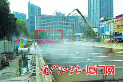 厦门轨道交通1号线工程莲花路口站施工现场。 装备新 莲花路口站于10月份启用风送式喷雾器 作用大 喷雾器安装在施工围挡上,每隔1米左右就有1个喷头,可实现上下左右无死角作业,把施工工地整体包围起来 推广快 岛内其他12个在建地铁站也将于近期安装这套喷雾降尘系统 厦门日报讯(文/记者 卓悦佳 殷磊 通讯员 李春妮 图/记者 王协云)厦门轨道交通1号线工程施工场地,多数位于城市中心区的交通主干道或人流密集区域,不可避免地会给市民工作、生活带来“阵痛”。为了把这些影响降到最低,轨道交通1号线专门成立了以项目经理为组长的文明施工及环境保护领导小组,实行各级人员责任制;建立了工程文明施工标准化管理制度,规范了文明施工标准,对施工现场围挡设置统一标准,对道路进行硬化,规定施工物料码放遮盖要求;采取多种措施,保护既有绿化,统一弃渣,控制粉尘。 绿化保护:能少迁一棵是一棵,能迟迁一棵是一棵 在莲花路口站围挡内的一角,长着三棵郁郁葱葱的大树,见证这个站点建设的点点滴滴。说起这三棵大树,负责莲花路口站的项目经理石文广颇有些得意:这可是他们经过站点优化,想了不少办法才保下原有的道路绿化树。 由于轨道交通施工围挡和交通道路疏解的需要,不少站点周边的辅道和绿化带都要进行迁改,但郁郁葱葱的大树早已成为厦门的绿色名片,如何尽量保护这些城市中的绿色,成为施工前期的重要工作。为此,设计交通道路疏解方案时,轨道交通1号线的施工讲究人性化,对树木采取保护性措施,避免施工损坏。同时,按“能少迁一棵是一棵,能迟迁一棵是一棵”的树木保护原则,对岛内沿线施工站点进行优化,尽量缩小围挡范围,比原计划少迁约20%的树木,节约了人力物力。除了莲花路口站以外,不少站点的附近依然保存着原有的行道树,把轨道交通施工对城市绿化的破坏,尽量减少到最低。 |