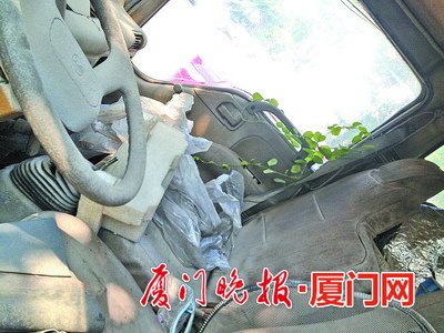 曾经被砍断过,小树依然长势茂盛。 厦门晚报讯(文/图 记者 王东城)植物大战僵尸的游戏想必很多人都玩过,现实中,居然有植物大战“僵尸车”的一幕上演。本报微信平台收到网友的反映,称一辆凯马厢式货车停在厦门创业园停车位内,起码停了7年时间,车子底下都长出一棵树了!而据了解,停车场内本无树。 真有这回事吗?本报记者前往调查。 现场 虽被砍断过,小树战斗力依然极强 记者在现场看到,这辆车位于创业大厦的旁边,车牌号是闽DA2570,车门写着“厦门盛鸿化学试剂有限公司”的字样,车身锈迹斑斑,轮胎也瘪了。在车头与后车厢连接处的车底部,有一棵茶杯粗的小树正在顽强生长。 虽然头顶上是几吨重的货车,但是这棵小树并没有认输,而是上演了超级“逆袭”。打开车门,发现树木的枝蔓缠绕在副驾驶室上,车身上也有不少枝蔓,乍一看,这棵树已经“包围”了僵尸车。如果再多些时间和阳光雨露的话,这棵树最终有可能将车子“吞没”。 创业园物业管理处工作人员说,这个停车场本身并没有种树,可能是这辆车在这里停放之后,有种子破土而出,最后一步一步长起来了。担心树木越长越茂盛,到时候“尾大不掉”,大约一年前,物业将这棵树砍断了。 不过即便如此,植物和“僵尸车”的大战仍在持续,记者看到,在树木断口处的旁边又生出了枝蔓。