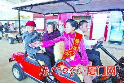市民体验机场的电瓶车。 2旅客登机方便吗? 行李自助托运,有厦门机场首个自助登机门 为了能让市民感受到全流程,机场方面模拟真实运营,给每个市民都办了登机牌;包括过安检、过登机闸口,都是模拟真实场景。“全程下来,感觉智能化程度很高。”一位市民说。 据悉,T4候机楼设有33个值机柜台,含普通柜台28个、头等舱柜台3个及无障碍柜台2个,16台自助值机,其中K6—K7为自助行李托运柜台;旅检通道H、I、J三个通道开通了“一证通服务”,无托运行李的旅客仅凭一张身份证就可以一次性办理值机和安检,至少可节省半小时;68号登机口是厦门机场首个自助登机门,如果旅客配合得好、用得顺畅,每班飞机可节省9分钟登机时间。 另外,T4采用集中式行李安全检查模式,能为旅客大大减少柜台排队等候时间;为避免旅客行李开检的尴尬,T4特别设置了封闭的行李开检室。 “剪刀式”登机桥也获肯定。厦门机场退休干部、原副总经理王泽源也是体验者之一,他说,“剪刀式”登机桥让出发游客和到达游客分流,科学合理。 |