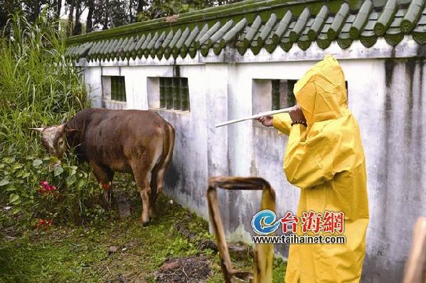 第3回合 饲养员VS大黄牛 不肯回去就麻醉你 “逃亡”中,最重量级的一只动物是重达七八百斤的大黄牛。它从笼舍里跑了出来,在周边啃着草。 大黄牛不仅体重大,脾气也比较暴躁。为了防止意外发生,工作人员现场准备了麻醉针,做好最坏的打算,“如果它不肯回去的话,那就只能将它麻醉了”。 面对工作人员的吆喝,大黄牛丝毫不理,只顾埋头吃草。就在大家以为真有可能要对它射麻醉针的时候,大黄牛终于回过神来,随着吆喝声,往笼舍里走去。这时大家悬着的心才算落了下来。“要不然到时候还得把它抬回去。”工作人员笑着说。 据介绍,园内的另外一只重量级动物就曾上演“逃亡”。重达数百斤的毛里求斯象龟,曾经从象龟馆偷偷跑出去,一直跑到几百米外的飞禽区,正准备下水。还好有工作人员及时发现,两个人将它死死抓住,并喊来帮手,这才将它安全送回了象龟馆。