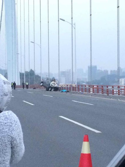 厦门网讯(记者 马庆伟)2月27日5时13分,海沧大桥发生三车追尾事故,一车翻车,事故占用多个车道,导致进岛方全面封闭。 记者从海沧大桥中控室了解到,事故情况大致如下:一辆小轿车跟集装箱货车追尾刮擦,结果一个轮子飞出去,导致后方一辆面包车撞到这个轮子翻车。 据了解,现场有人员伤亡,具体情况还需进一确认。目前,拖车已经赶到现场,现场正在处理中。 海沧大桥中控室提醒,现场有工作人员正在处理。截止记者7点15分发稿时,海沧大桥进岛方向处于封闭状态,建议市民选择其他路线进岛。