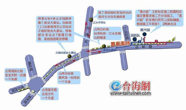 东南网4月16日讯(海峡导报记者 吕寒伟/文 叶允平/制图)筼筜湖整治,污水怎么引出去?吕岭路的地底下是一条“水路”。从4月19日起,吕岭路污水管将开始施工,届时,公交车和小汽车的出行都会受到影响。这是导报记者昨天从市交警支队获悉的。 吕岭路污水排放管道工程起点位于吕厝路口宝龙天桥,终点在金尚路。这段路目前正在进行轨道施工,为了减少多项施工造成的影响,交警、公交、施工单位经过详细研究,出台了一个分步聚、分时间的方案。 白天比夜晚少占道 4月19日至7月19日,宝龙天桥-吕厝路口段将占用一个车道施工。 吕厝转盘到台湾街口,施工路段在道路中间,需要围挡。为了减少影响,交警要求施工单位白天占一个道、晚上才能占两个道——6:00-23:00,只占用路中间南侧的一个车道施工;23:00-06:00,占用南侧两个车道施工。 4月19日至9月19日,吕厝路口火车站往SM方向,占用一个车道施工。 影响较大的是“台湾街-江头东路段”,要占用靠近消防一侧的辅道施工。这就意味着,从成功大道下来的车辆,要和从金尚路来的车辆一起,走“下面”的道路。 4月19日至7月19日,江头东路-金尚路段,要占用靠近“公路征费中心站”一侧的辅道,分段施工,单侧剩余2个主车道。过去,辅道主要是用来走公交车,施工期间,公交站点将进行迁移或调整。 新增一“报业大厦站” 从4月19日起,从金尚路往台湾街方向的“报业大厦站”,会出现两个,一个在原址,一个在过了台湾街路口后,称之为“分站停靠”: 直行吕岭路、穿过台湾街路口的7条公交线路,停到新的“报业大厦站”,分别是:36路、46路、88路、109路、123路、129路和311路。 从吕岭路右转台湾街的4条公交线路,仍然停靠原来的“报业大厦站”,分别是:34路、39路、96路和115路。 3条线路减停“报业大厦站”:651路、755路和942路。公交公司解释,这三条线路是进出岛线路,已接近终点站,故减停。 |