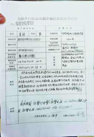 拦截诈骗信息情况登记表。 周末也要到银行转转 王德平的家就在银行附近,每逢周末,他都会到银行转转,特别注意ATM区是否还有边讲电话边操作的人。 王德平熟悉各种诈骗手段,他脑中“诈骗信息库”的资料来源,除了新闻,很大一部分源于工作中的积累。王德平将自己所拦截的每起虚假信息诈骗案都清楚记录下来,他说这是最好的劝导工具。记者注意到,记录上显示他曾帮一位女老板守住了20万资金。 |