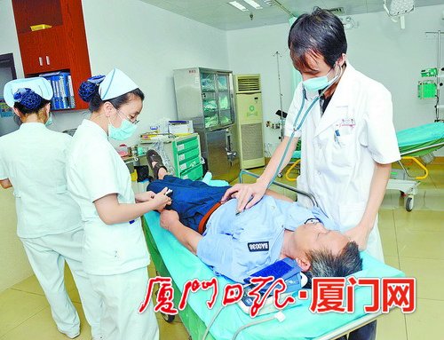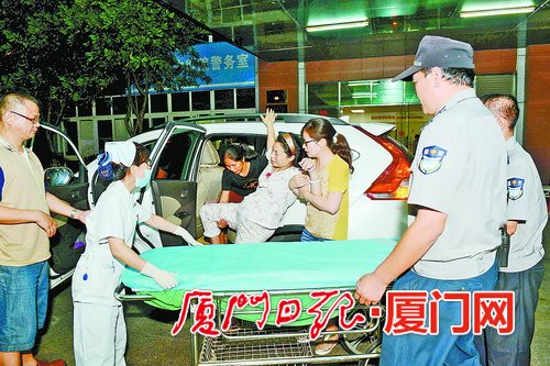 一名孕妇被送到中医院,急诊室医务人员紧急接人送入产房。 厦门日报讯(文/本报记者 何无痕 实习生 林桂桢 图/本报记者 黄晓珍)不到半小时内,市中医院急诊室迎来一个吐得一塌糊涂的醉汉、一个孕期突然提前的准妈妈、一个胡言乱语的醉驾嫌疑人,医护人员分别进行了妥善处置。 “快!快!快!”夜间急诊室,无论是医务人员还是保安、护工,都争分夺秒救治伤患。 前晚,本报记者到市中医院,记录夏夜急诊室的点滴故事,体会其中的酸甜苦辣。据统计,前晚至昨日凌晨6点,市中医院接诊急诊病号183人。 |
