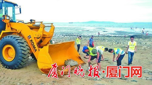 环岛路沙滩整治行动启动 铲车上沙滩清扫各类"暗器"