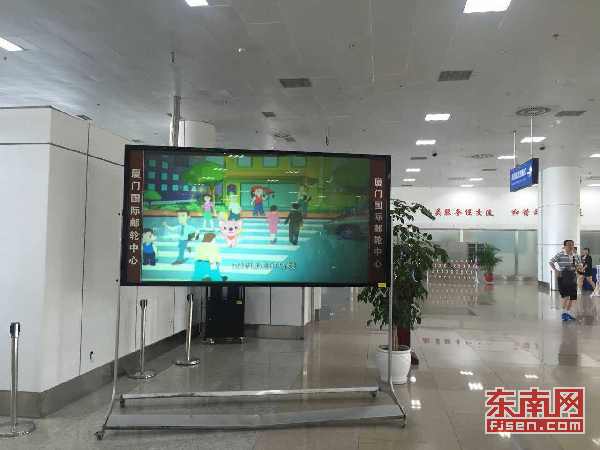 “会动的倡议书”在厦门国际邮轮中心播放。(彭菲 图)